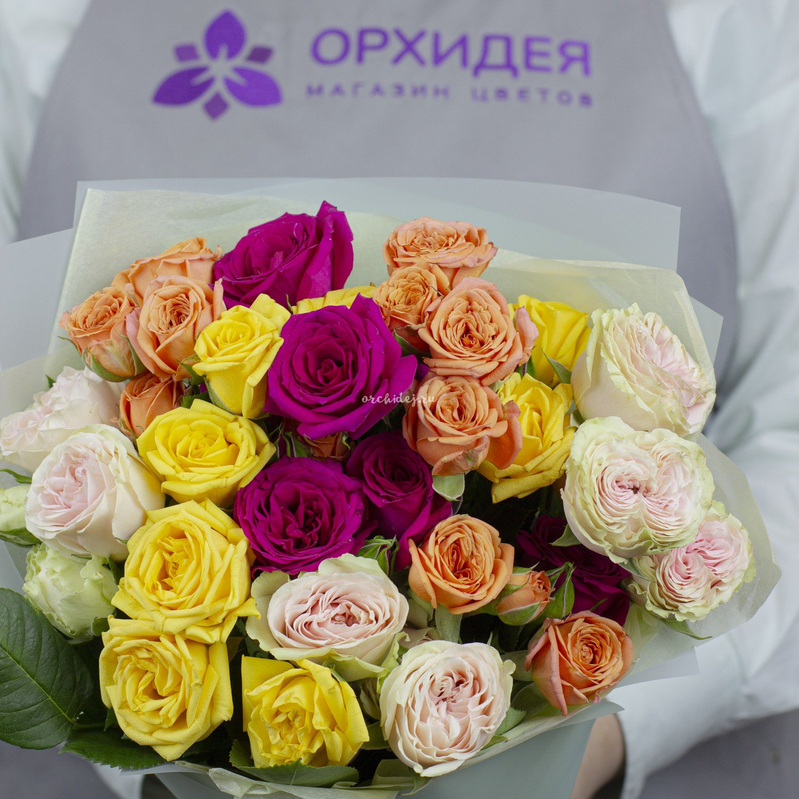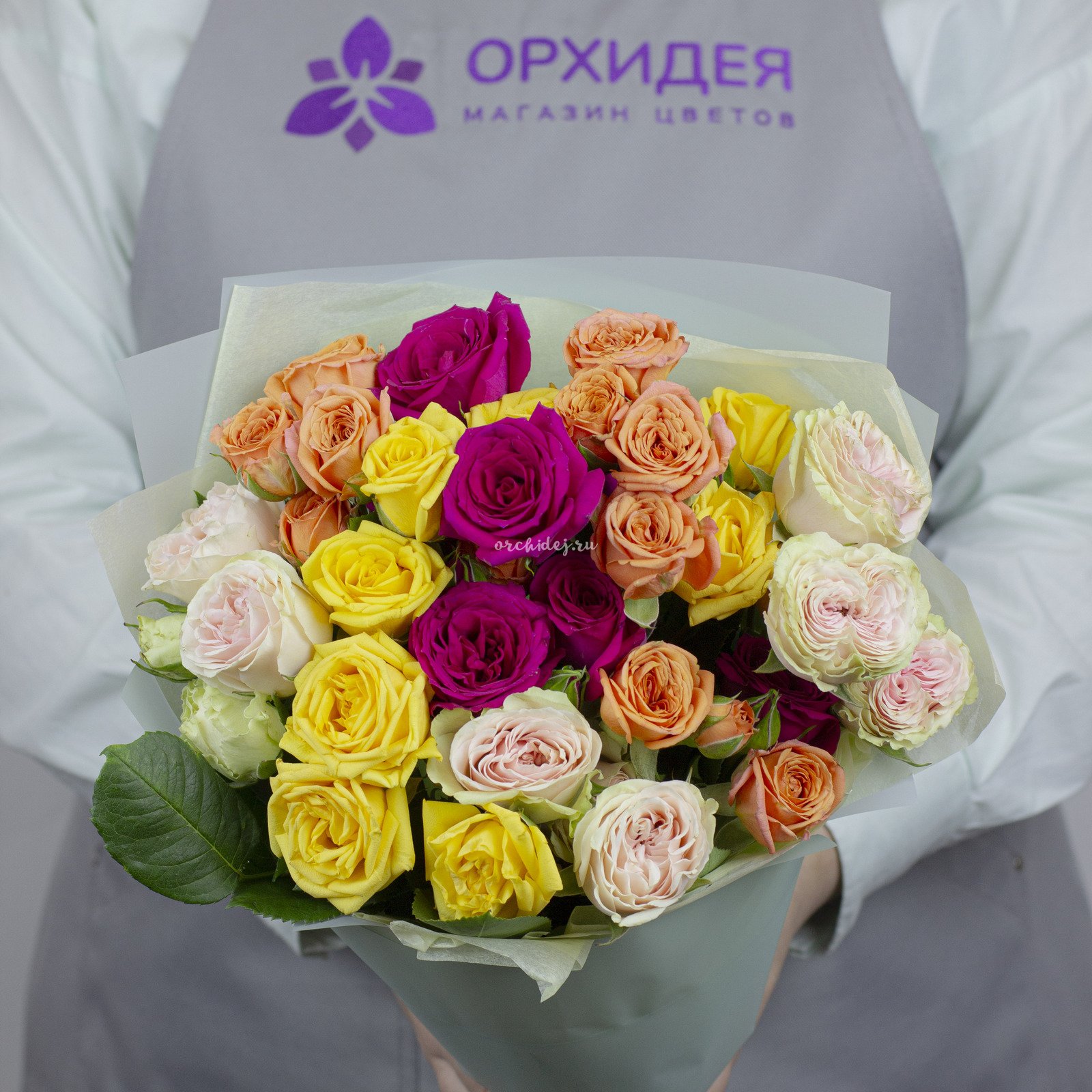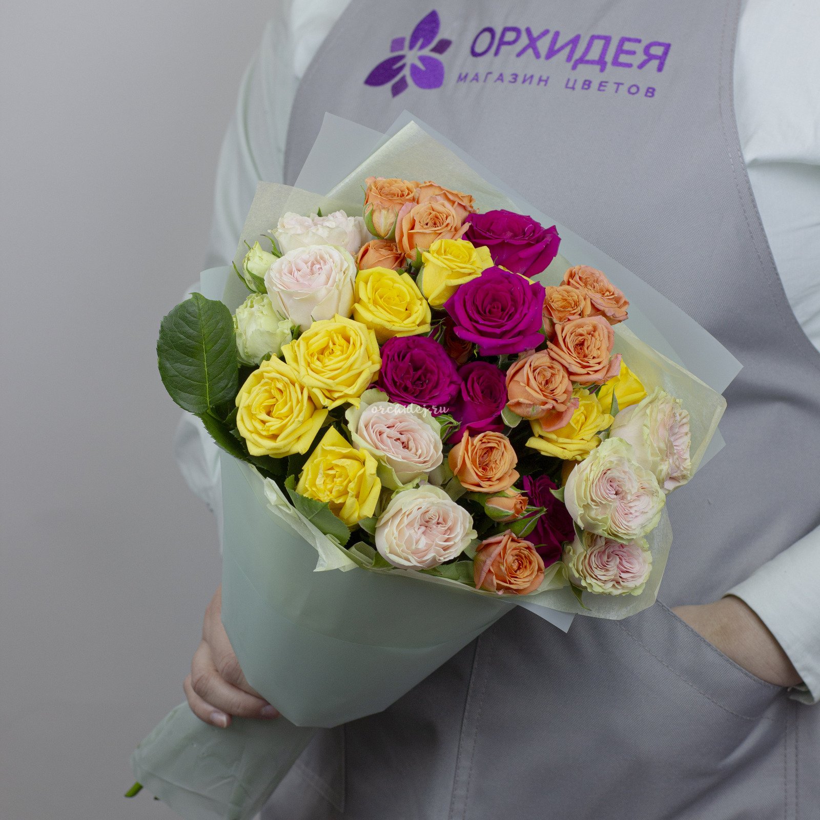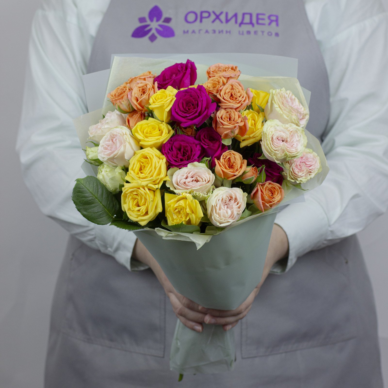 Порадуйте свою любимую оригинальным и стильным букетом из 11 кустовых роз микс. Этот букет станет отличным подарком на любой праздник или просто без повода, чтобы выразить свои чувства и заботу.