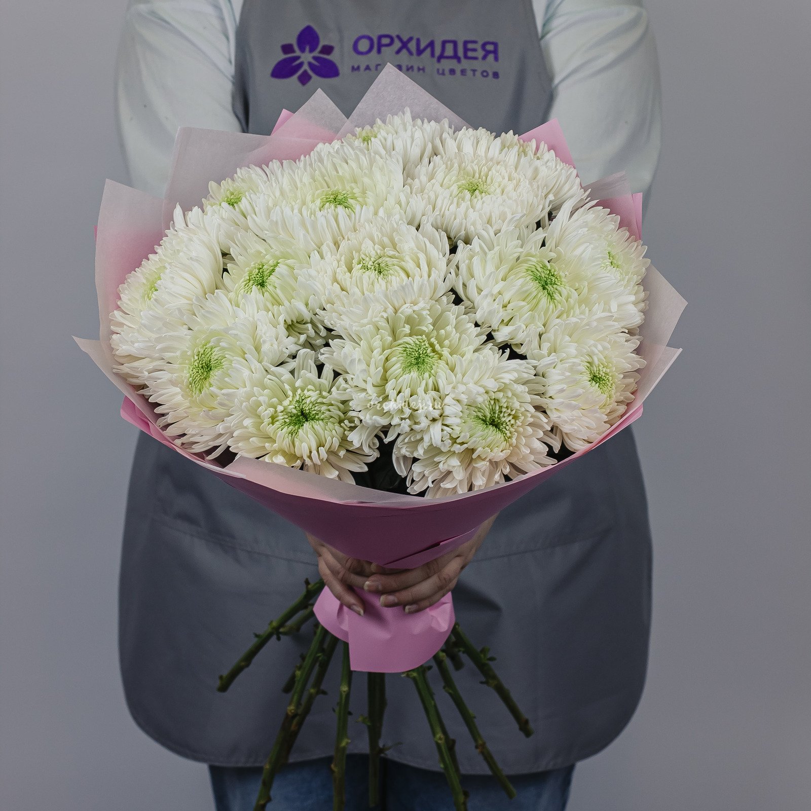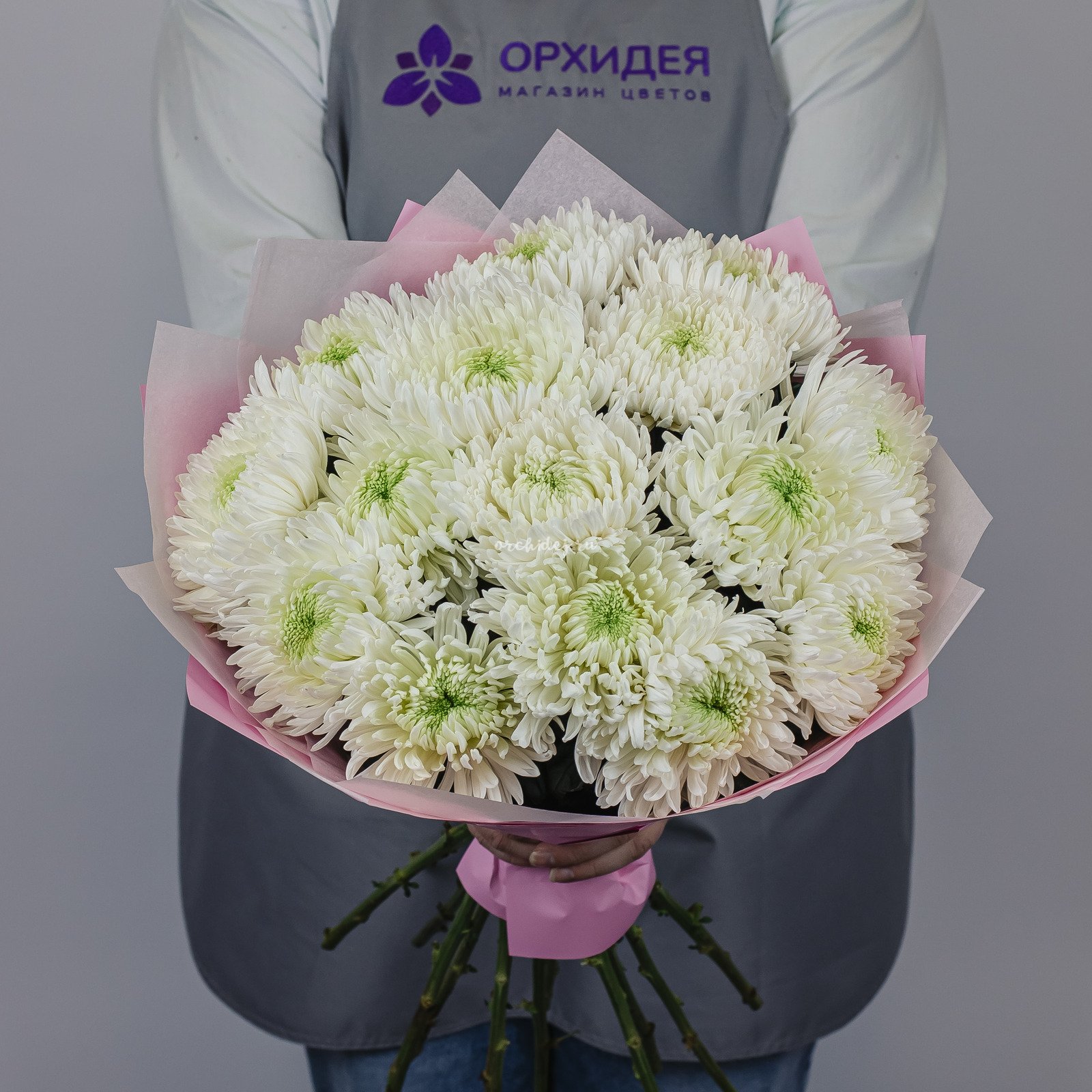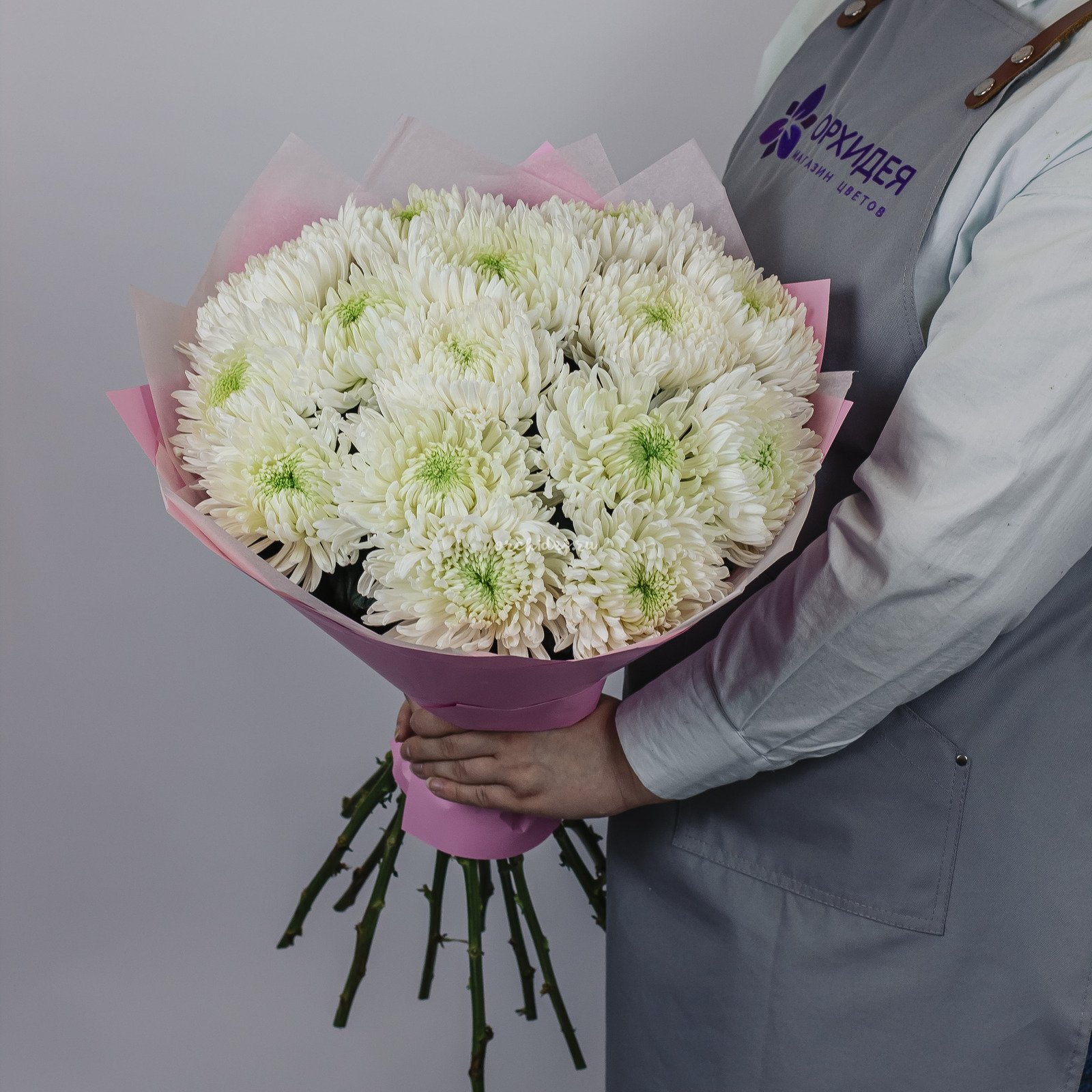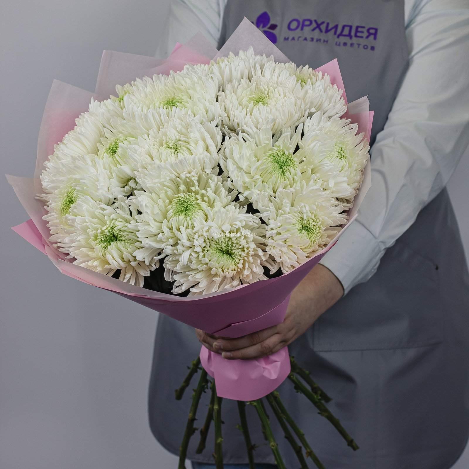 Букет состоит из 15 белых хризантем магнум, которые символизируют чистоту и свежесть. Эти цветы обладают приятным ароматом и долго сохраняют свою свежесть, что делает их отличным выбором для подарка.
