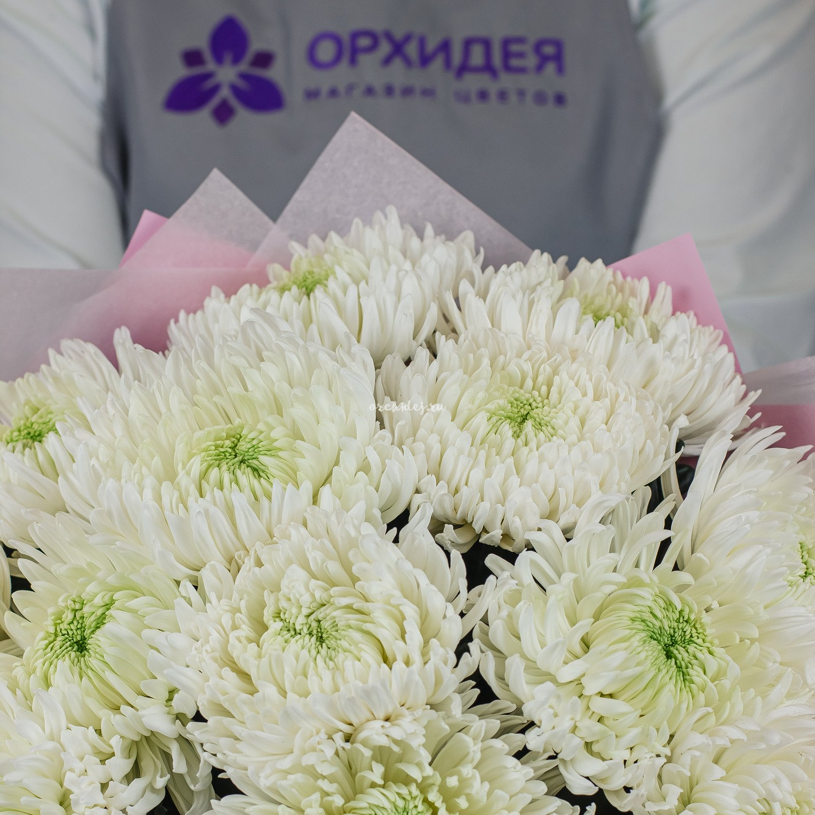 Состав: Хризантема одноголовая, Сложная упаковка 100, Тишью, Лента Атласная